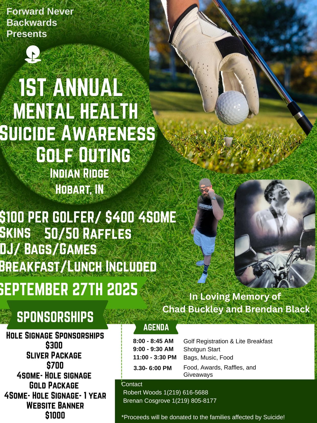 After losing my best friend to suicide January 31, 2025, I decided I wanted to put an event together that brings awareness to this cause! A lot of people feel they’re alone in their fight against mental health and I wanted to make sure that I let people know that they are not. Anyone who has been affected by this we would love for you to be a part of this event through sponsorship or through golfing alone! It will be a day filled of fun and family and also an event that helps raise money for a good cause ! Proceeds from this event will go to families affected by suicide to help their kids further themselves forward! Let’s make this event one to remember and bring light to a very serious cause! Proceeds will be donated to families affect by mental health/suicide!
